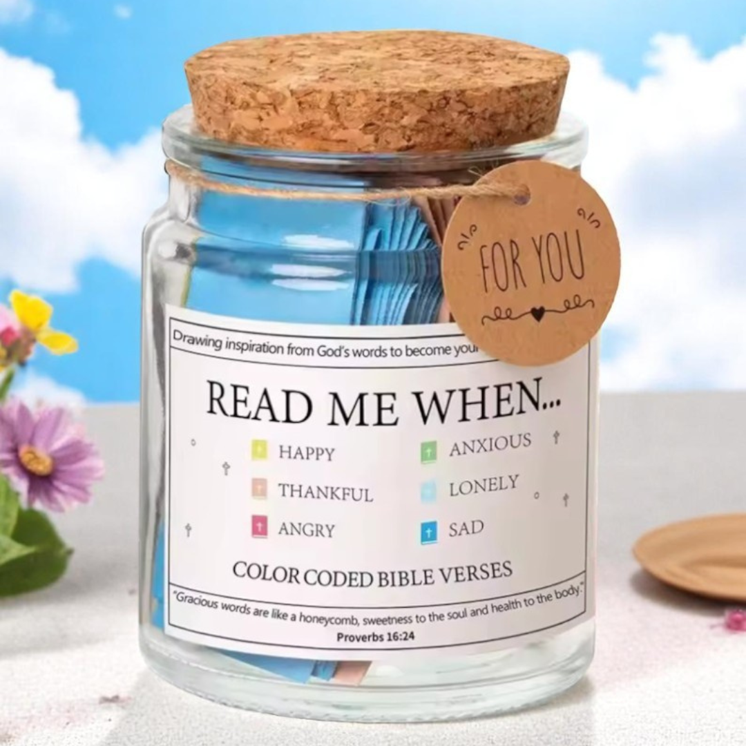Every verse in the jar is sourced straight from Scripture, offering you God’s Word—pure, powerful, and unfiltered—for whatever you're feeling.
